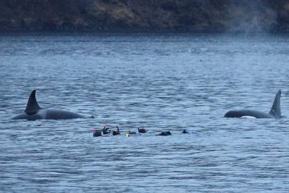 Les interactions avec les Orques (ou les baleines à bosses, nombreuses aussi!) sont des moments fascinant d'une intensité incroyable. Il n'est pas rare d'être submergés par l'émotion à la sortie de l'eau qui ne doit pas nous faire oublier que nous sommes peu de choses dans ces eaux glacées!