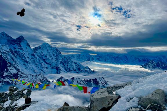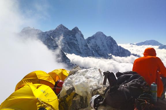 Le camp de base se compose d'une tente mess pour les repas, d'une tente de cuisine, d'une tente toilettes et de tentes individuelles confortables. Aujourd'hui, nous donnons à notre organisme le temps de s'acclimater lentement. Nous profitons de la journée en explorant les alentours du camp de base ou en réalisant de courtes promenades. Manger une bonne nourriture saine est essentiel pour réussir, alors mangez bien. Pendant l'un des jours de repos avant de commencer l’ascension, nous allons mener une puja spéciale (cérémonie bouddhiste) avec le lama local pour demander aux divinités de la montagne leur bénédiction. Il s'agit d'un moment important pour les alpinistes occidentaux et les Sherpas. Alternativement, nous pourrions décider de nous baser dans le lodge de l'autre côté de la moraine, si nous étions très peu nombreux. Particulièrement confortable, avec sa cuisine délicieuse et généreuse, sa salle commune chauffée avec un poêle à bois, le lodge est situé à 20 minutes du camp de base.