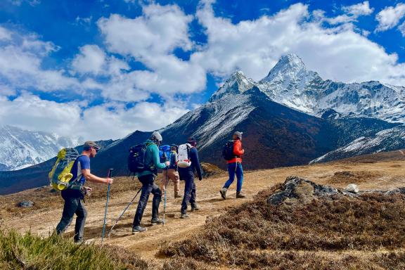 Pour l’ascension, vous êtes guidé par une équipe de sherpas d’altitude népalais, soit 1 sherpa d’altitude par participant (Pour ceux qui le souhaitent, nous pouvons également proposer 2 sherpas d’altitude par participant avec supplément de prix - nous consulter). Pendant le trekking jusqu’au camp de base, vous êtes accompagné par une équipe locale d’assistants guides et de porteurs. Et tout au long du programme, nous nous appuierons sur d’autres compétences selon nos besoins, et notamment sur un médecin spécialiste de la haute altitude de l’Ifremmont. À partir du camp de base, nous aurons accès à un routeur météo expérimenté.